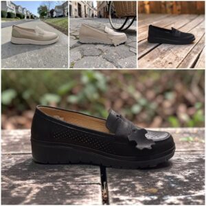 Buty firmy SABATINA mają miękką cholewkę, elastyczną grubszą podeszwę amortyzującą kroki oraz wsuwany fason, który ułatwia zakładanie i nie uciska stopy. Idealne na długie spacery.